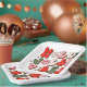 Retro Christmas Holly Jolly Vibes Trendy Holidays Paper Party Teller präsentiert den Text "Holly Jolly Vibes" in einem Retroskript in rot, grün und rosa Akzent mit Sternen und niedlichen Happy Gesichtern. Entworfen von ©Evco Holidays www.zazzle.com/store/evcoholidays