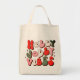 Retro Christmas Holly Jolly Vibes Trendy Holidays Tragetaschen präsentiert den Text "Holly Jolly Vibes" in einem Retroskript in rot, grün und rosa Akzent mit Sternen und niedlichen Happy Gesichtern. Entworfen von ©Evco Holidays www.zazzle.com/store/evcoholidays