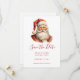 Save the Date Karte mit einer niedlichen Retro-Style-Abbildung. Der Weihnachtsmann mit einem buschigen weißen Bart, der seinen traditionellen roten Anzug trägt.