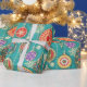 Retro Weihnachtsbaumschmuck auf Aqua Geschenkpapier