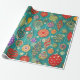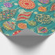 Retro Christmas Tree Ornaments on Aqua Gift Geschenkpapier
