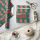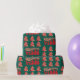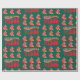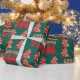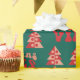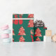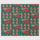 Vergnügen und festliche Retro-Vibes verpacken Papier mit rot, grün und gold minimalistischen Bäumen.