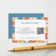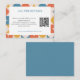 Rett Geld und Papier Füllen Sie diese kleine Karte in Ihre Hochzeitseinladung, um Ihren Gast einzuladen, um Ihre Website für alle Details über Ihre Hochzeitswebsite zu besuchen. Dieses Design umfasst drei benutzerdefinierte Textfelder für Ihre Hochzeitsdetails, eine Website, einen QR-Code für RSVPs oder zusätzliche Informationen zu einem fesselnden Muster, das durch den lebendigen Geist der 1970er und 1960er Jahre inspiriert ist und Halbkreise und Ogeeskalops kombiniert. Das Set ist elegant in einer Farbpalette aus Blau, Orange und Gelb gestaltet und bildet einen klassischen Hintergrund aus Ekru, der eine perfekte Balance zwischen Nostalgie und Eleganz schafft.