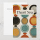 Fügen Sie Ihrer Dankbarkeit einen Vintagen Charme hinzu. Diese spielerische Dankeschön-Karte zeigt kühne, farbenfrohe Retro-Kreise, die eine lustige Atmosphäre aus der Mitte des Jahrhunderts hervorrufen. Ideal für Feiern, Party oder alle, die eine nostalgische Drehung mit ihrem Dankeschön Lieben.