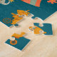 Step right up to the greatest show in your jigsaw puzzle! This enchanting puzzle features a whimsical illustration of a vibrant big top, a cheerful clown holding a bouquet of balloons, and an adorable dancing elephant with huggable bear riding a bicyle —all rendered in a beautifully nostalgic retro color palette.