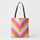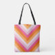 Dieses Bild weist ein Zickzack, lebendiges Muster auf, das sich aus nach unten gerichteten V-Formen in abwechselnden Farbbändern in Orange, Pfirsich, Rosa und Hellrot zusammensetzt. Die Farben wechseln sanft und erzeugen einen dynamischen und energetischen geometrischen Effekt, der an einen stilisierten Sonnenuntergang oder Retro-Textildesign erinnert. Die Symmetrie und die kühnen Farbtöne verleihen dem Design ein lebendiges, spielerisches Ambiente, das sich für moderne Dekoration oder Mode-Anwendungen eignet.