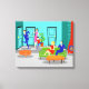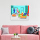 Diese Retro Classic TV Stretched Canvas Print bringt Sie zurück zu einer einfacheren Zeit. Der minimalistische Stil der 1960er Jahre, der zeichnend Cartoon, lässt Sie nach den Eröffnungskrediten suchen. Das Design zeigt ein modernes, gesunkenes Wohnzimmer mit aquamarinen und türkisfarbenen Wänden und einem roten Kamin in Form eines Kamins, das mit einem großen Kamin ausgestattet ist. Alle Augen sind auf den lankigen, Mann des Hauses, während er seinen großen Eingang macht. Der hübsche Mister trägt einen blauen Anzug und eine orangefarbene Krawatte. Seine liebenswürdige Frau und sein energischer, junger Sohn eilen sich, ihn zu grüßen. Die Dame des Hauses trägt ein heiß rosa, ummanteltes Kleid, das sie an allen richtigen Stellen ausfüllt. Der dreh in ihrem dunklen Haar ist schiere Perfektion. Junior trägt ein rotes Shirt und eine blaue Jeans für seinen Hauch, um zu sehen, ob sein Vater ihm etwas gebracht hat. Wow! Klopfen Sie nicht über die Pflanze, Junior! Auf der unteren Ebene sehen wir eine grüne Couch und einen orangefarbenen Couchtisch. Warte! Wir scheinen Gäste zu haben! Auf dem Sofa sitzt ein dunkelhaariger Mann in einem blauen Anzug und einer roten Krawatte, neben einer formschönen blonden Frau in einem roten Kleid mit einem roten Bogen im Haar. Hey! Das sind Vaters Mitarbeiter. Wie sind sie zuerst dorthin gekommen? Es ist eines der ewigen Geheimnisse des Fernsehens. Es sieht so aus, als wären wir alle Set für einen großartigen Abend in Sitcom Vorstadt. Aber zuerst müssen wir sehen, ob der Vater über den Orangenottoman stolpern wird oder ihn umgehen wird mit extravaganten Fußarbeit. Oh, der Zanie! Das einzige, was von dieser Szene vermisst ist, ist das Titellied. Und wenn Sie genau zuhören, können Sie es wahrscheinlich in Ihrem Kopf hören.