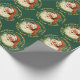 Dieses festliche Weihnachtsgeschenk-Wrap zeigt ein wunderbares Vintages Porträt des Weihnachtsmannes, mit seinem traditionellen rot-weißen Strumpf-Kappe und dem buschigen weißen Bart. Er trägt einen Heiligen mit einer roten Beere. Das Portrait ist umgeben von einem Kranz von Kiefernnadeln auf einem waldgrünen Hintergrund. Der Halbkreis glänzend goldene Text oben sagt Frohe Weihnachten, und am unteren Happy New Year, bildet einen Kreis um das Santa-Portrait. *Bitte beachten Sie, dass das Bild gedruckt ist und keinen Glitzer enthält.*