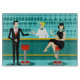 Mit dieser Retro Cocktail Lounge Cutting Board ist jede Stunde eine Happy Hour. Das moderne Design aus der Mitte des Jahrhunderts besticht durch einen lebhaften, minimalistischen Stil der 1960er Jahre, einen Cartoon, der von einem klassischen Cocktail-Bar zeichne. Vor der Kulisse einer Wasserwand können wir eine Reihe von Gläsern sehen. Zumindest können wir die aquamarinen Silhouetten von Gläsern sehen. Aufgrund der Gestalt des Stickereis ist dieses Bar gut ausgestattet, um Ihre Pfeife zu nassen, ganz gleich, was Ihr Getränk bevorzugt. Ein kompetenter und persönlichster Barkeeper ist die Besetzung des aquamarinen Bar mit gelben Akzenten. Der junge Barkeep trägt ein unberührtes, weißes Shirt mit schwarzer Bogen-Krawatte. Sein frisch aussehendes gutes Aussehen, seine blonden Haare und seine schwarzen Hipster-Brillen geben uns allen Grund zu der Annahme, dass er entweder seine Tage als Schauspieler oder Superheld verbringt. Auf der einen Seite gibt der hübsche Mixologe einem Kunden auf der anderen Seite der Bar einen Martini. Der gewartet Kunde ist ein weitläufiger Gentleman in schwarzem Anzug und roter Krawatte. Er ist der Typ, der als groß, dunkel und gut aussehend beschrieben wird, selbst wenn es noch Stunden bis zum Ende der Zeit ist. Es scheint einen roten und chromen Bar mit dem Namen von Herrn Debonair zu geben. Doch um nicht vorauszusehen, frage er die Frage: "Entschuldige mich. Ist dieser Platz frei?" Er frage den ravenhaarigen Gal auf dem benachbarten Bar. Sie ist ein richtiger Typ von "Mädchen nebenan", wenn Sie zufällig neben einer makellosen Schönheit leben, mit einer Figur, die nicht aufhört. Sie trägt ein schwarzes Kleid und hält einen Martini in einer Hand. Sie hofft, dass sie und der nahende Gentleman mehr gemeinsam haben, dass ihre Getränkevorlieben und die Wahl der Kleiderfarbe. Es sieht so aus, als got dieser Abend einfach interessant. Herzlichen Glückwunsch!