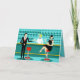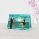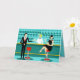 Mit dieser Retro Cocktail Lounge Grußkarte ist jede Stunde eine Happy Hour. Das moderne Design aus der Mitte des Jahrhunderts besticht durch einen lebhaften, minimalistischen Stil der 1960er Jahre, einen Cartoon, der von einem klassischen Cocktail-Bar zeichne. Vor der Kulisse einer Wasserwand können wir eine Reihe von Gläsern sehen. Zumindest können wir die aquamarinen Silhouetten von Trinkgläsern sehen. Aufgrund der Gestalt des Stickereis ist dieses Bar gut ausgestattet, um Ihre Pfeife zu nassen, ganz gleich, was Ihr Getränk bevorzugt. Ein kompetenter und persönlichster Barkeeper ist die Besetzung des aquamarinen Bar mit gelben Akzenten. Der junge Barkeep trägt ein unberührtes, weißes Shirt mit schwarzer Bogen-Krawatte. Sein frisch aussehendes gutes Aussehen, seine blonden Haare und seine schwarzen Hipster-Brillen geben uns allen Grund zu der Annahme, dass er entweder seine Tage als Schauspieler oder Superheld verbringt. Auf der einen Seite gibt der hübsche Mixologe einem Kunden auf der anderen Seite der Bar einen Martini. Der gewartet Kunde ist ein weitläufiger Gentleman in schwarzem Anzug und roter Krawatte. Er ist der Typ, der als groß, dunkel und gut aussehend beschrieben wird, selbst wenn es noch Stunden bis zum Ende der Zeit ist. Es scheint einen roten und chromen Bar mit dem Namen von Herrn Debonair zu geben. Doch um nicht vorauszusehen, frage er die Frage: "Entschuldige mich. Ist dieser Platz besetzt?" Er frage den ravenhaarigen Gal auf dem benachbarten Bar. Sie ist ein richtiger Typ von "Mädchen nebenan", wenn Sie zufällig neben einer makellosen Schönheit leben, mit einer Figur, die nicht aufhören wird. Sie trägt ein schwarzes Kleid und hält einen Martini in einer Hand. Sie hofft, dass sie und der nahende Gentleman mehr gemeinsam haben, dass ihre Getränkevorlieben und die Wahl der Kleiderfarbe. Es sieht so aus, als got dieser Abend einfach interessant. Herzlichen Glückwunsch! Die Innenseite dieser Karte ist aqua und kann personalisiert sein, wie Sie wählen.