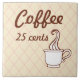 Diese Kachel ähnelt einem Retro-Kaffeezeichen. Nutzen Sie diese Vintage Kaffeekachel als Küchentrivet, Kunst, Dekoration, Wohngestaltung, Geschenk, etc... Benutzen Sie diese Kachel in einer Küche, Bäckerei, Café, etc... Das Design stammt aus der Originalkunst.