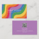 Retro Color Wave minimalist QR Code weiße Skript Visitenkarte. Personalisieren Sie mit QR-Code, Name und Text.