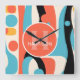Retro Colorful Abstract Pattern with Monogram Quadratische Wanduhr