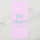 A colorful retro funky modern pink blue cream wedding dinner menu. Which features chic template design of boho vintage cream background on the front and pink on the back. With Blue whimsical typography. Perfect and matching with the whole suite.