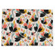 A Large Gift Bag Designed In Retro Colors Of Black, Teal, Gold And Orange Shaped In A Floral Leaf Design
