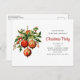 Postcard Einladung mit einer Vintagen Style Illustration. 3 rote Weihnachtsbaumbläschen umgeben von grünen Heiligen und Beeren. Retro cool.