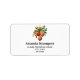 Adressetiketten mit einer Vintagen Stildarstellung. 3 rote Weihnachtsbaumbläschen umgeben von grünen Heiligen und Beeren. Stilvolles Retro-Design.