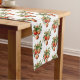 Table Runner mit einer Vintagen Stildarstellung. 3 rote Weihnachtsbaumbläschen umgeben von grünen Heiligen und Beeren. Stilvolles Retro-Design.