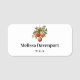Ein Namensschild mit einer Vintagen Stildarstellung. 3 rote Weihnachtsbaumbläschen umgeben von grünen Heiligen und Beeren. Stilvolles Retro-Design.