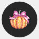 Retro Coquette Pumpkin Pink Bow Fall Erntedank Runder Aufkleber
