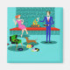 Dieses Retro-Paar mit Dog Magnet sieht aus wie eine Szene aus einer romantischen Komödie. Das minimalistische Design der 60er Jahre besticht durch ein ansprechendes Paar, das einen romantischen Abend bei der Zuhause genießt. Das elegante Zimmer besticht durch ein Aqua- und einen aquamarinen Backsteinkamin mit leuchtend rotem Kamin. Eine schöne, rötliche Frau, die ein helles, rosa Kleid trägt, steht auf der Spitze. Sie genießt einen Martini mit einem schwimmenden Oliven, einem rauschenden Feuer, guter Musik, und die Gesellschaft ein großer, dunkler und gut aussehender Mann. Der Mann trägt einen blauen Anzug und eine rote Krawatte. Sein Martini-Glas wird aufgezogen, um seinen bezaubernden Begleiter zu Toast. In seiner anderen Hand hält er ein Schallplattenalbum. An seinen Füßen sehen wir eine bezauberndste Dackel, die einen roten Kragen trägt. Der spielerische Dackel-Hund läuft in Richtung eines grünen Plattenspielers mit orangefarbenen Spindelbeinen. Auf dem Boden gibt es eine bunte Gruppe von lustigen, eklektischen, Vinyl-Platten. Prost! Hier ist der perfekte Abend bei Zuhause.
