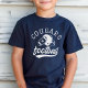 Let him rep his team with this navy kids tee featuring retro varsity-style typography and a football helmet graphic with a customizable team name and player number. The classic white-on-navy design has a cool vintage feel that is perfect for wearing to practice, school spirit days, and cheering on teammates. Customize with his team name and jersey number for a look that matches the real deal.