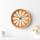 Retro-Stift auf orangefarbenem Hintergrund Jedes Blatt markiert eine Stunde