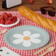 Groovy One Retro Sunshine Rainbow Daisy inspirierte die Teller der ersten Geburtstagsparty.