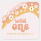 Retro inspirierte Wild Ein erster Geburtstag Aufkleber im Stil der 70er Jahre und boho Schriftart und Farben.