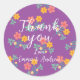 Retro Daisy Bouquet Muster in Lila Danke klassische Rundaufkleber. Groovy, mädchenhaft, süß & feminin Blume Design von Dreaming Cocoon. Personalisieren Sie den Aufkleber mit Ihren Namen. Sie können den Text 1 - Vielen Dank und den Text 2 - Liebe, mit Ihren eigenen Worten anpassen. Und Text 3 - ändern Sie mit Ihren Namen. Dieses hübsche Blumenmuster bedankt sich bei Ihnen Aufkleber ist eine großartige Idee für ein Gastgeschenk, ein personalisiertes Geschenk/Paket und ein umgebautes Siegel.