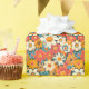 This retro daisy floral wrapping paper features bold orange, teal, yellow, and coral flowers inspired by 70s groovy patterns. Perfect for birthdays, bridal showers, Mother’s Day, spring gifts, or anyone who loves colorful floral style.