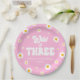 This is a Pink Retro Daisy Flower Wild & Three 3rd Birthday Party Paper Plates.