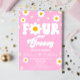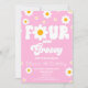 This is a Pink Retro Daisy Four Ever Groovy 4th Birthday Party Invitation.