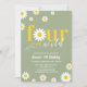Retro Daisy Four Ever Wild Sage Green 4. Geburtstag Einladung.