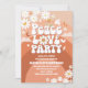 Feiern Sie stilvoll mit dieser retro-blumigen Kindergeburtstagseinladung mit verspielten Gänseblümchen, Regenbögen, Friedenszeichen und Schmetterlingen. Perfekt für ein groovy Party-Thema, kombiniert dieses Design nostalgische 70er-Jahre-Vibes mit modernem Charme. Die bold typographie und die fröhlichen Pastellfarben machen es zu einem unterhaltsamen Erinnerungsstück für die Gäste und schaffen die richtige Atmosphäre für eine freudige Feier. Ideal für Kindergeburtstage, insbesondere für diejenigen, die farbenfrohe, hippie-inspirierte Designs lieben.