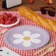 Groovy One Retro Sunshine Rainbow Daisy inspirierte die Teller der ersten Geburtstagsparty.
