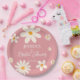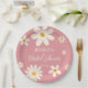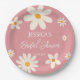 Floral daisy Wüste Retro rosa Brautparty boho Vintage Blume, einfaches modernes Skript-Brautparty personalisierte mit Monogramm gedruckte Papier Teller Brautparty Tischdekor