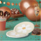 Retro inspirierte Teller zum ersten Geburtstag mit den 70er Jahren Stil-Gängen und boho Schriftart und Farben.