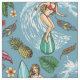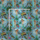 Multicfarbene Retro-Surf-tropische Grafiken mit aquamarinem Hintergrund, nahtlos wiederholtes Muster
