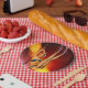 Dies ist ein perfektes Design für Bachelor-Parties. Der Retrodruck mit einem Tanzmädchen-Entertainer verfügt über passende Servietten