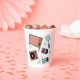 Retro-Entwürfe von Fernsehern, Radios, Platten, Lampen und Plattenspieler auf Papier Tassen, Spaß für jedermann und jede Gelegenheit.