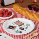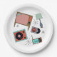 Retro-Entwürfe von Fernsehern, Radios, Platten, Lampen und Plattenspieler auf Papier Teller, Spaß für jedermann und jede Gelegenheit.