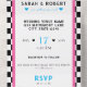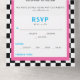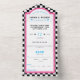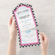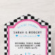 Retro Diner Checkerboard Pink & Blue Wedding All In One Einladung