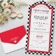 Retro Diner Checkerboard Red Black & White Wedding All In One Einladung