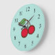 Retro Diner Kitchen Turquoise Cherry Wall Clock Große Wanduhr