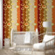 Die Retro Disco 70er Mandarine besticht durch Ovale und Streifen in Rot und Orange bis Senf und cremig Gelb Erfrischende Farbkombinationen Warm und optimistisch