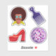Retro 70er Disco Themed Custom-Cut Vinyl Sticker Set mit: *Groovy 70er Typ mit Afro *Afro Pick *Shiny Disco Ball *Rote Plattformschuhe