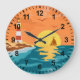 Retro Distressed Beach Lighthouse Wall Clock Große Wanduhr