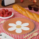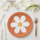 Retro inspirierte Teller zum ersten Geburtstag mit den 70er Jahren Stil-Gängen und boho Schriftart und Farben.