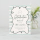 Fügen Sie Ihrem Party mit diesem Green Doodle Wavy Frame Abschluss Einladung eine lustige, moderne Drehung hinzu! Dieses Design mit einer stilvollen, von Hand gezeichnet Grenze und einem frisch schlauen grünen Hintergrund mit spielerischen Bio Streifen ist perfekt für den Absolventen, der etwas Anderes will - schick, minimalistisch und voller Persönlichkeit. Produktmerkmale: Moderne doodle-artige Wavy-Frame-Design Elegante Serif- und Script-Typografie-Mix Weiche grüne und neutrale Farbpalette für eine moderne, bedienerfreundliche Vorlage oder gedruckte Optionen verfügbar 5" x 7" Format (Sondergrößen auf Anfrage) Ideal für Highschool- oder Uni-Abschluß-Feiern Feiern Feiern Feiern Sie Ihre Errungenschaften mit dieser kühlen und geschmackvollen Einladung, die so einzigartig wie Sie sind!
